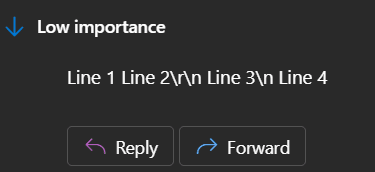This happens because PAD doesn’t recognize regular newlines or carriage returns (\r, \n, or \r\n) when sending emails. It won’t parse the escape characters and ignores line breaks you enter manually. Instead, it expects HTML formatting. That means if you enter something like this: